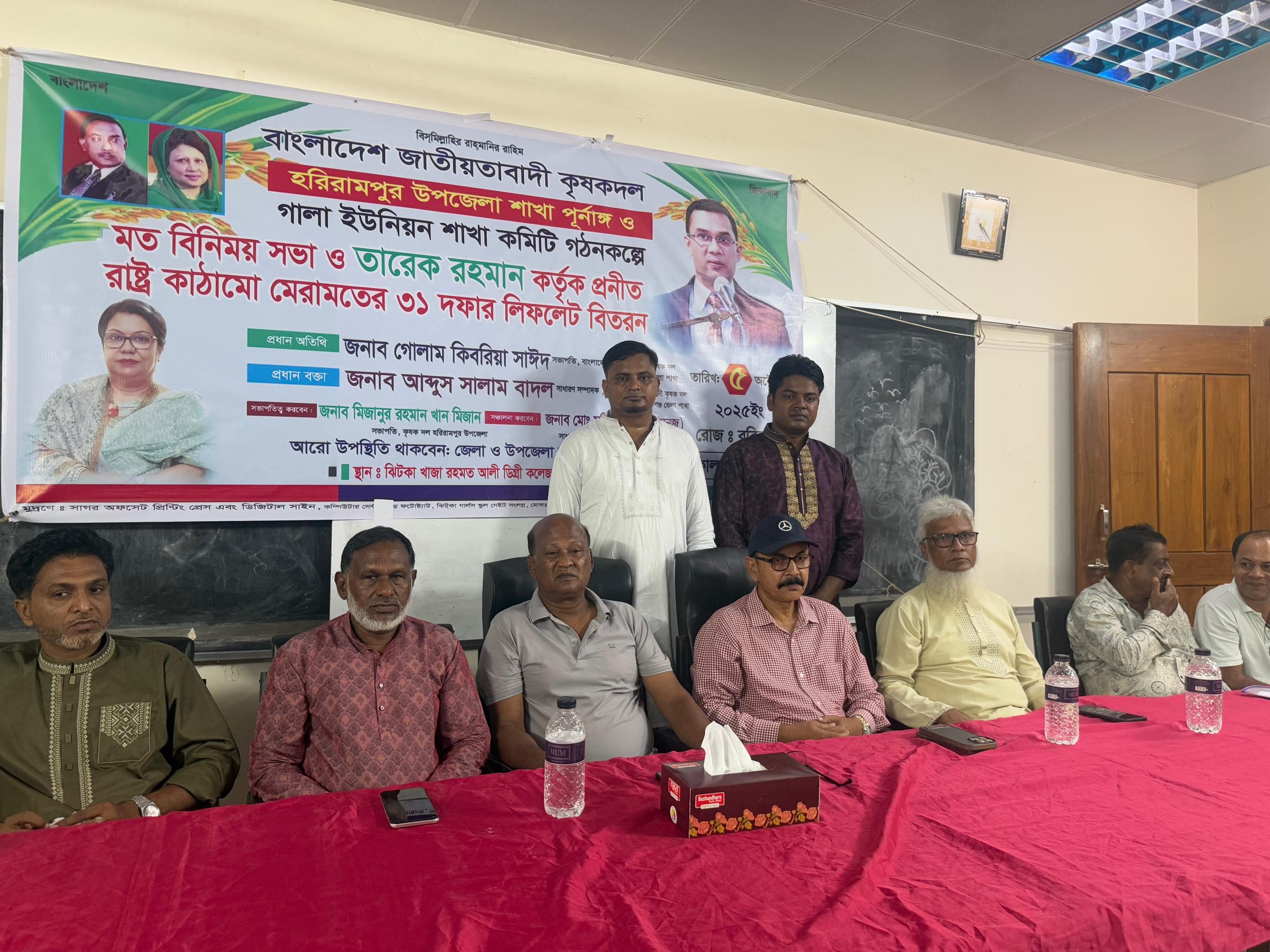 মানিকগঞ্জের হরিরামপুর উপজেলার গালা ইউনিয়নে বাংলাদেশ জাতীয়তাবাদী কৃষক দলের কমিটি গঠন প্রকল্প উপলক্ষে এক মতবিনিময় সভা অনুষ্ঠিত হয়েছে।
